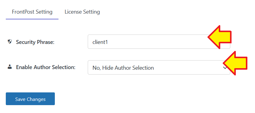 Inside AI FrontPost setting page, you only need to set up TWO things: Security Phrase and Author Selection