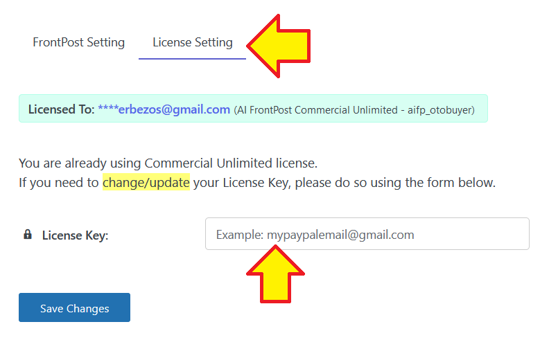 2. Click the 'License Setting' tab, input your License Key and click the 'Save Changes' button